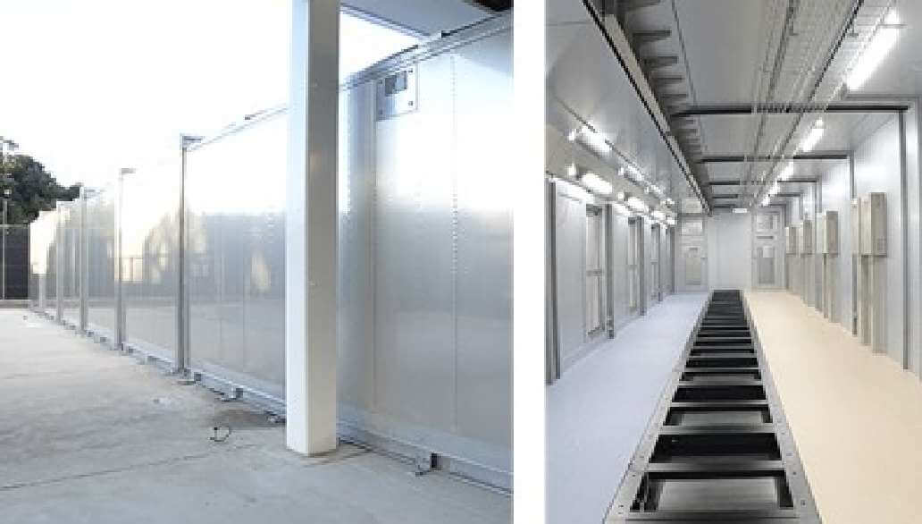 クラウドサービスプロバイダー複数コンテナを現地で連結するオープンフロアスペース設計を採用しました。コンテナ内のスペースを広くとることで、クラウド基盤用の特殊なITラックを設置しました。