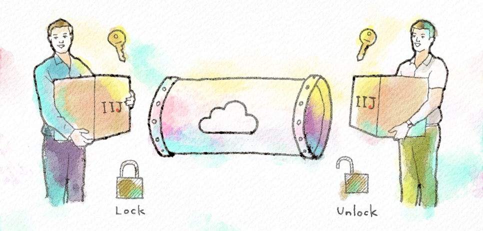 簡単に言うと、データを送る時に暗号化して鍵をかけ、データを受け取ったら、対になった鍵で暗号化を解除する仕組みです。これにより、あたかも専用線を使っているように、他者からは「見えない」通信が実現できているのです。