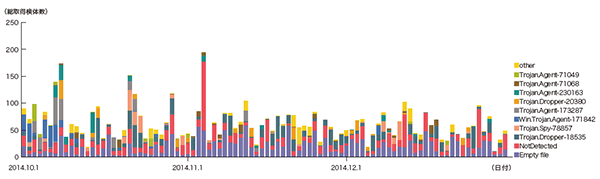 図-2に、2014年10月から12月の期間にIIJ DDoSプロテクションサービスで取り扱ったDDoS攻撃の状況を示します。