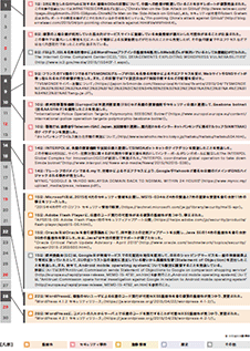 この期間中では、Microsoft社のWindows(※3)(※4)(※5)(※6)(※7)、Internet Explorer(※8)(※9)(※10)、Office(※11)などで修正が行われました。Adobe社のAdobe Flash Playerでも修正が行われました。Oracle社のJava SEでも四半期ごとに行われている更新が提供され、多くの脆弱性が修正されました。なお、Java 7については、今回の修正を持ってサポート終了の予定となっていることから、Java8への移行が推奨されています。これらの脆弱性のいくつかは修正が行われる前に悪用が確認されています。