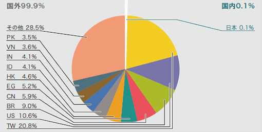 図-7 検体取得元の分布(国別分類、全期間、Confickerを除く)