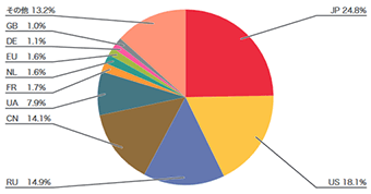 図-3 DDoS攻撃のbackscatter観測による攻撃先の国別分類