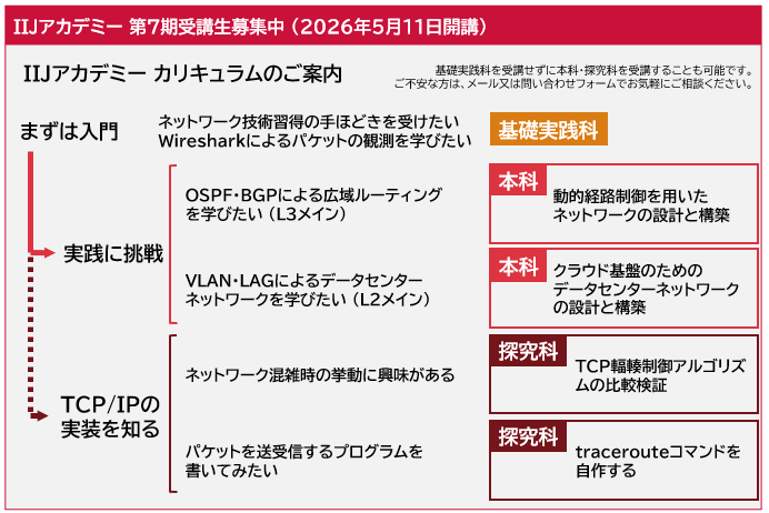 IIJアカデミーとしては本質的な技術を習得する本科を先に受講することをお勧めしますが、希望があれば本科の受講経験がなくとも探究科に応募いただくことは可能です。