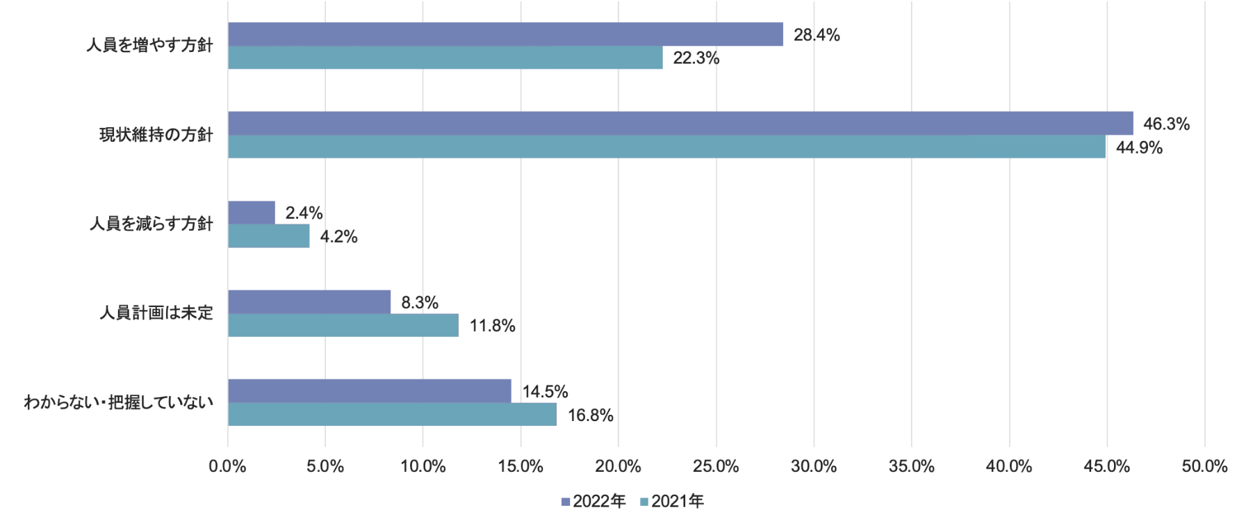 昨年に比べ、「人員を増やす方針」の企業が増加。業種別の傾向も明らかに。
