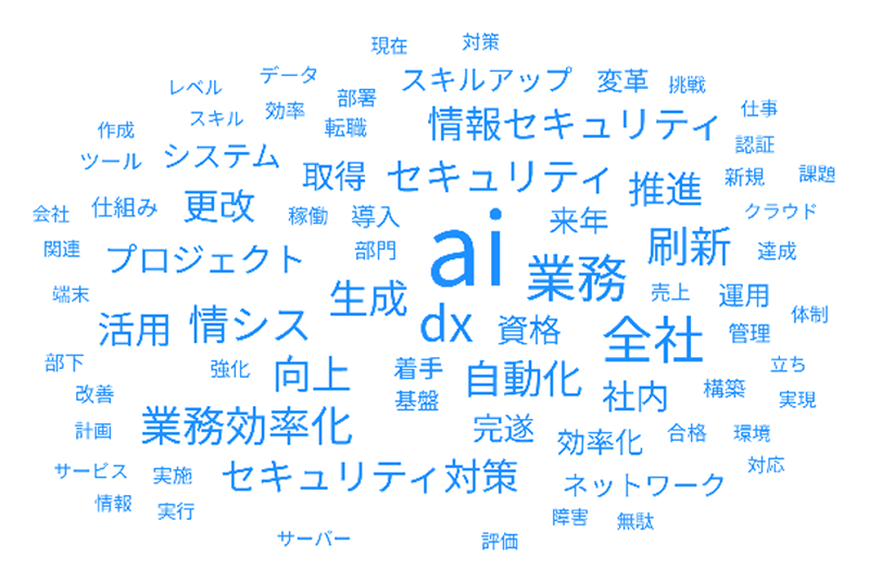 他にも「人材育成」や「転職」など多様な意気込みが集まりました